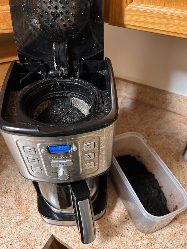 Save your used grounds in a sealed container until ready to use in your garden or your compost pile. Should mold develop in the stored grounds, no worries, as mold actually contributes to decomposition in the pile. Some local coffee shops can also be a source for used grounds if you want a larger quantity. Just make sure to make prior arrangements with them and provide a labeled, clean, 5-gallon bucket to put them in.