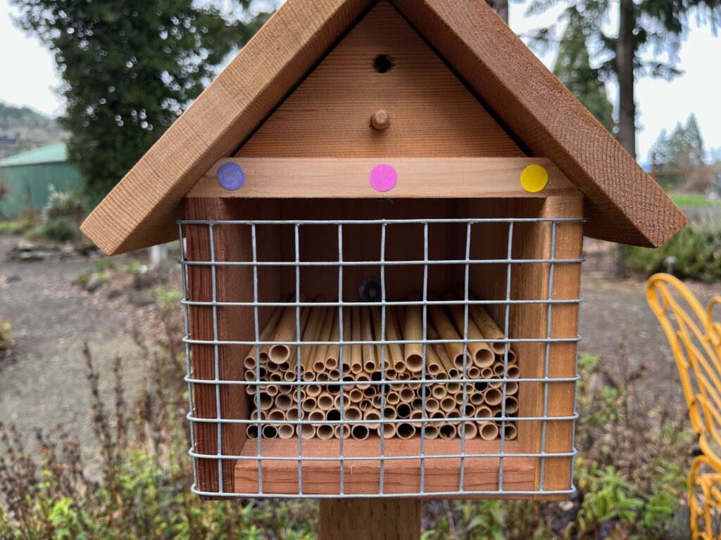 There is a lot of buzz about mason bees (Osmia lignaria) these days. More and more gardeners are hoping to attract these wild and highly efficient pollinators into their home gardens. Because they do not create communal hive structures, mason bees are non-aggressive and make delightful, gentle gardening partners. They have unique superpowers that set them apart from honey bees in other ways as well. There is an increasing library of information about them through OSU Extension and on YouTube. But as with all creatures, housing them in human ways comes with responsibility.
