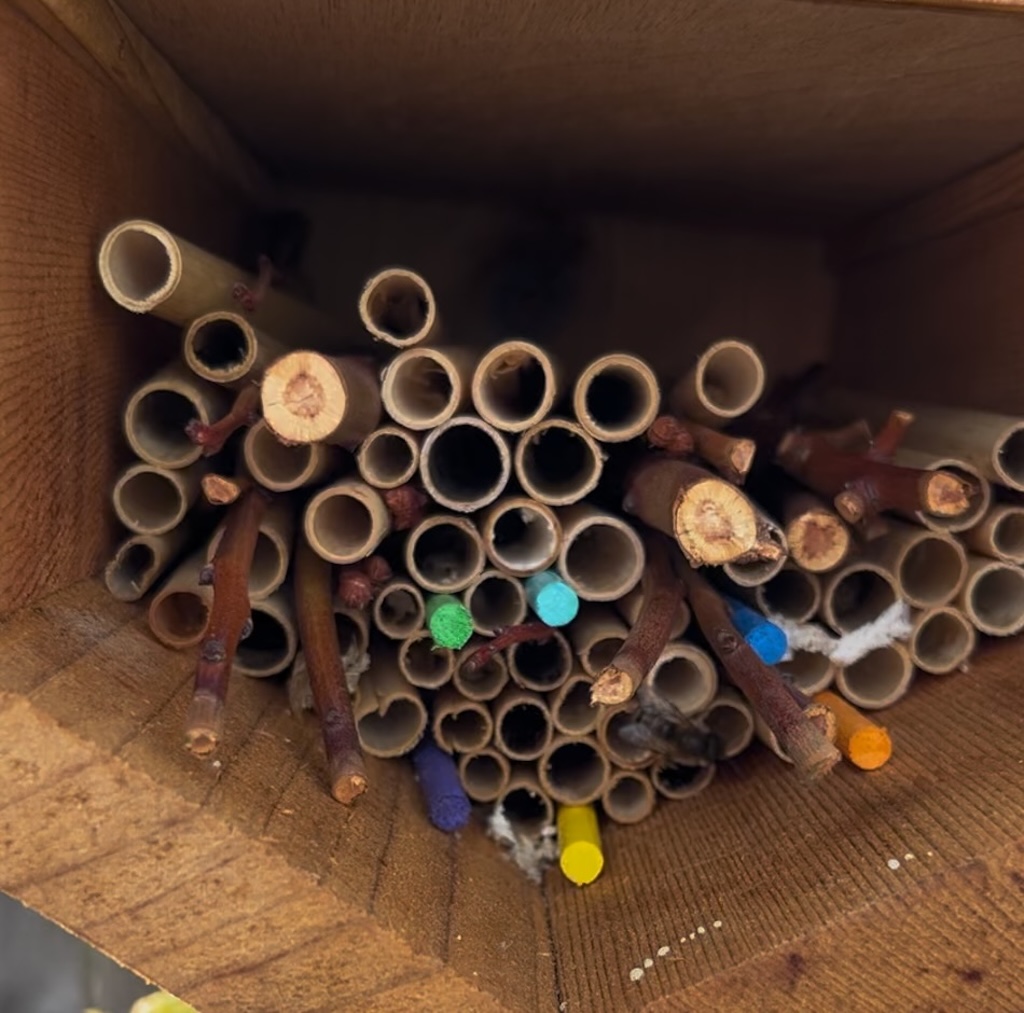 Some houses will hold both blocks and reed tubes in a variety of circumferences, giving bees a choice.